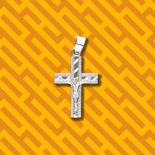 Cruz Ondas Diamantada Mini con Piedra de Plata 925