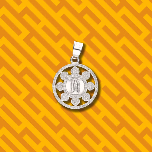 Medalla Rehilete de la Virgen de Guadalupe con Piedra de Plata 925