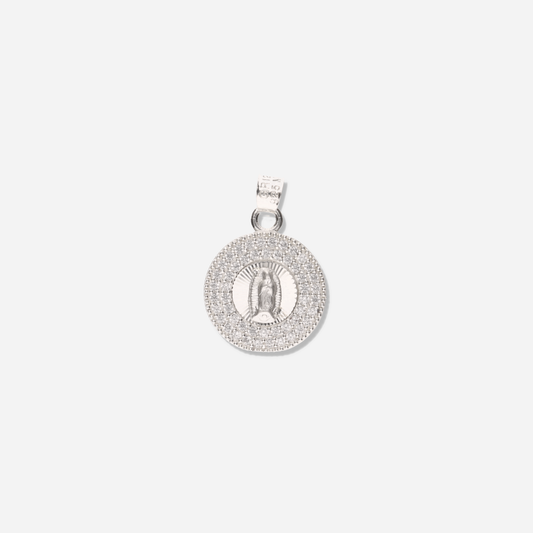 Medalla Corazón Redonda de la Virgen de Guadalupe con Piedra de Plata 925