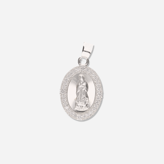 Medalla Corazón Gota de la Virgen de Guadalupe con Piedra de Plata 925