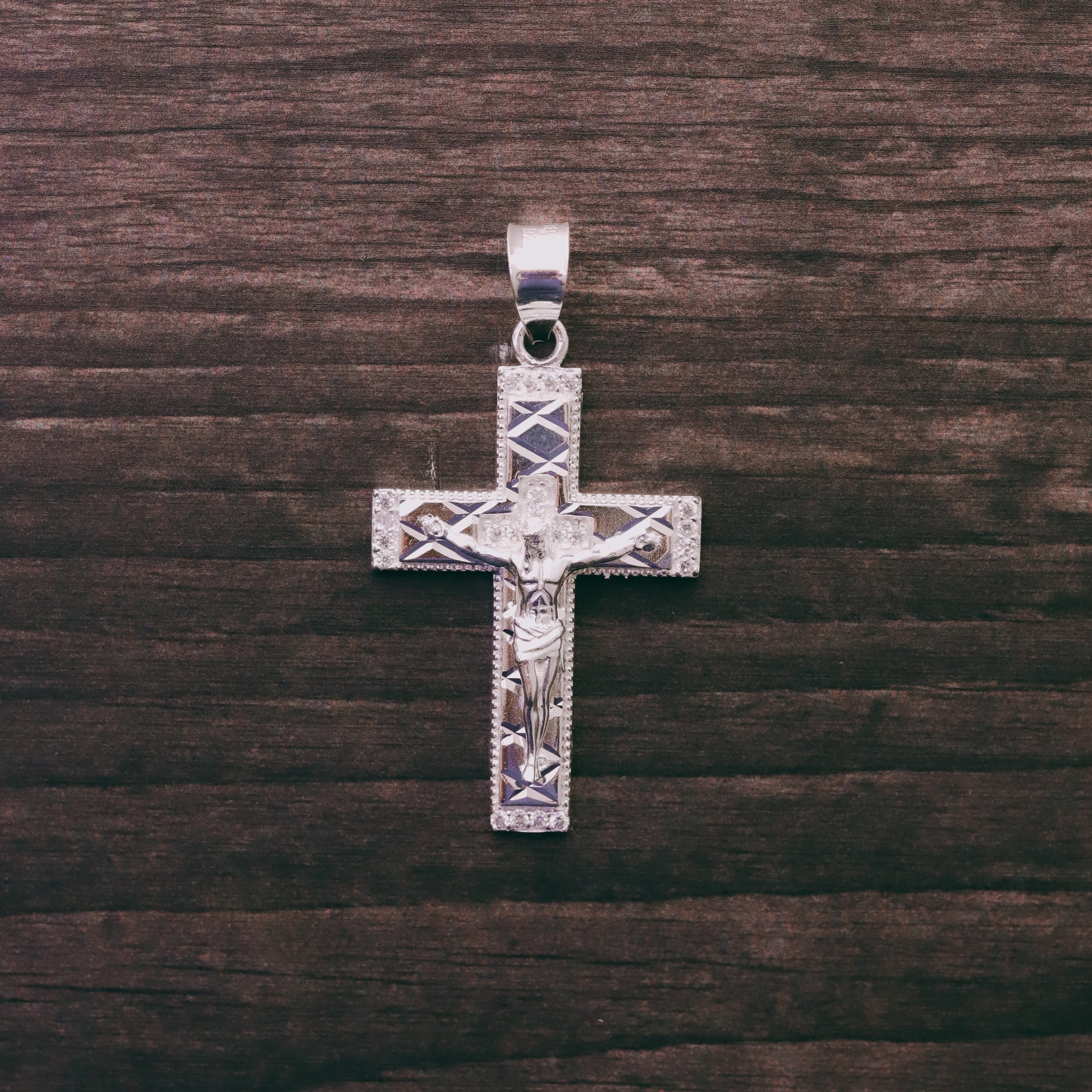 Cruz Doble Diamantada Mini con Piedra de Plata 925