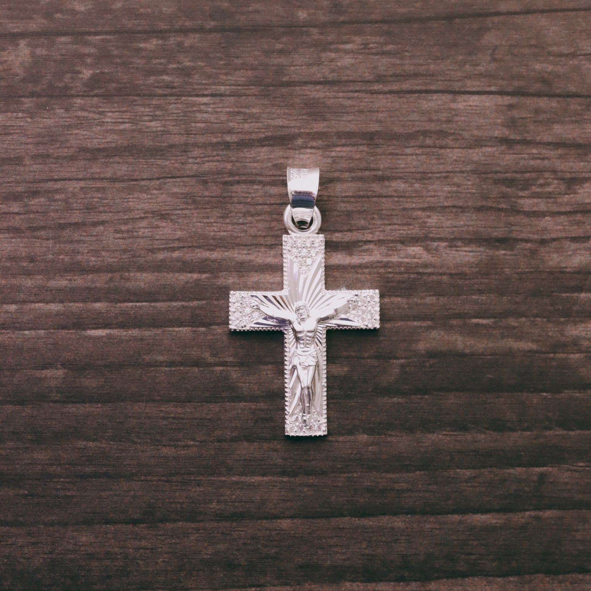 Cruz Espiral Diamantada Mini con Piedra de Plata 925