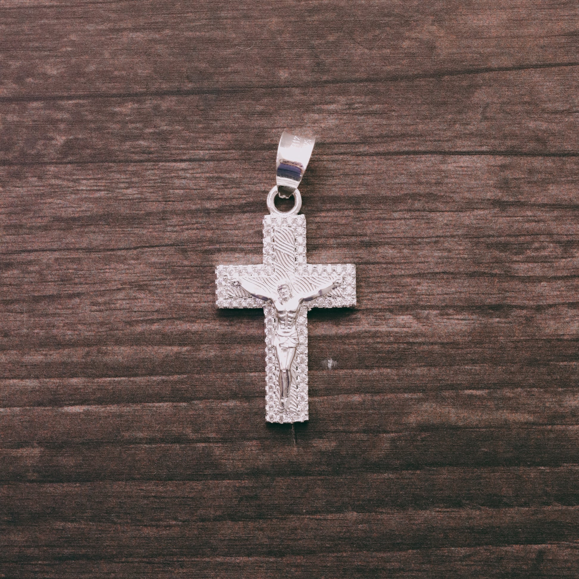 Cruz Ondas Diamantada Mini con Piedra de Plata 925