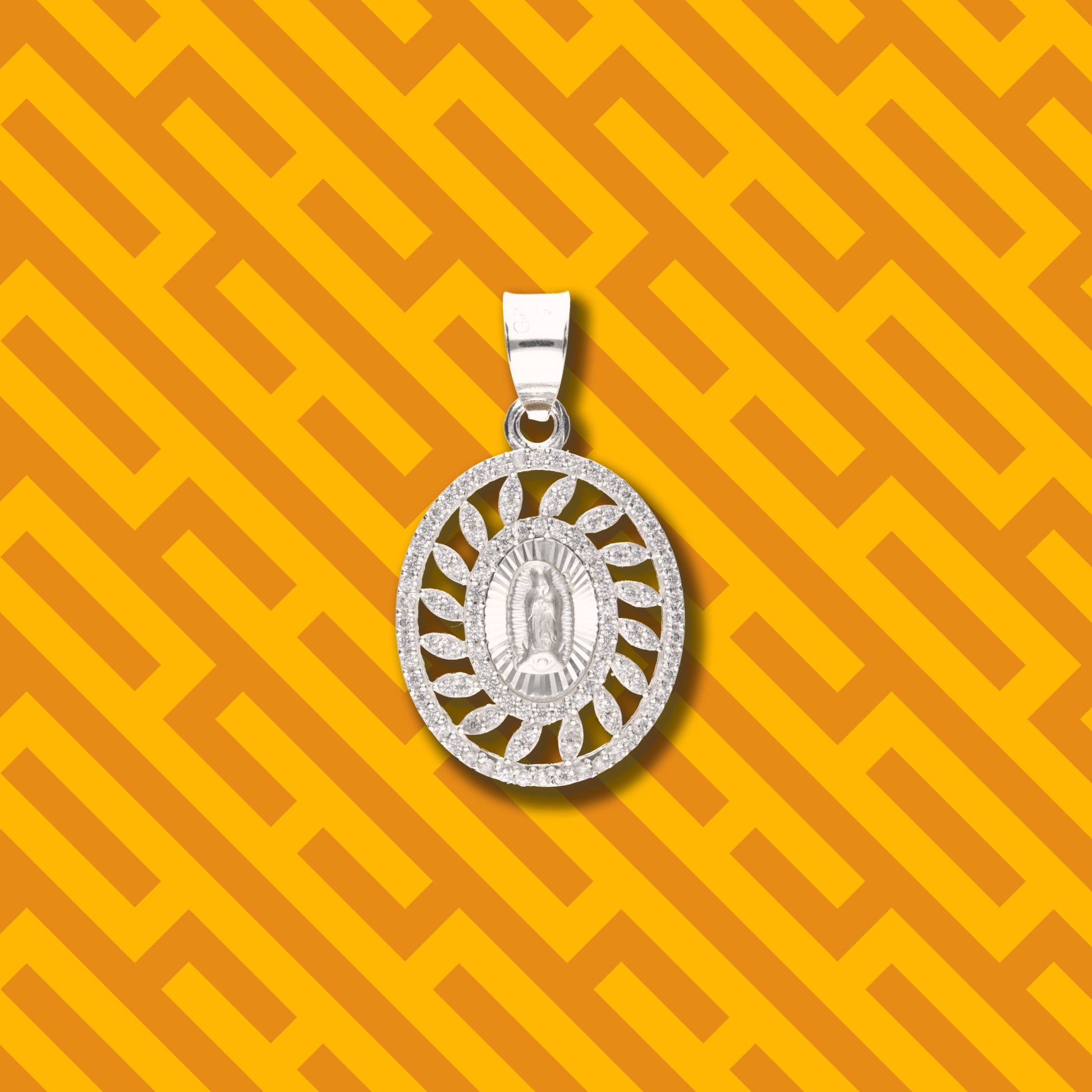Medalla Rehilete de la Virgen de Guadalupe con Piedra de Plata 925