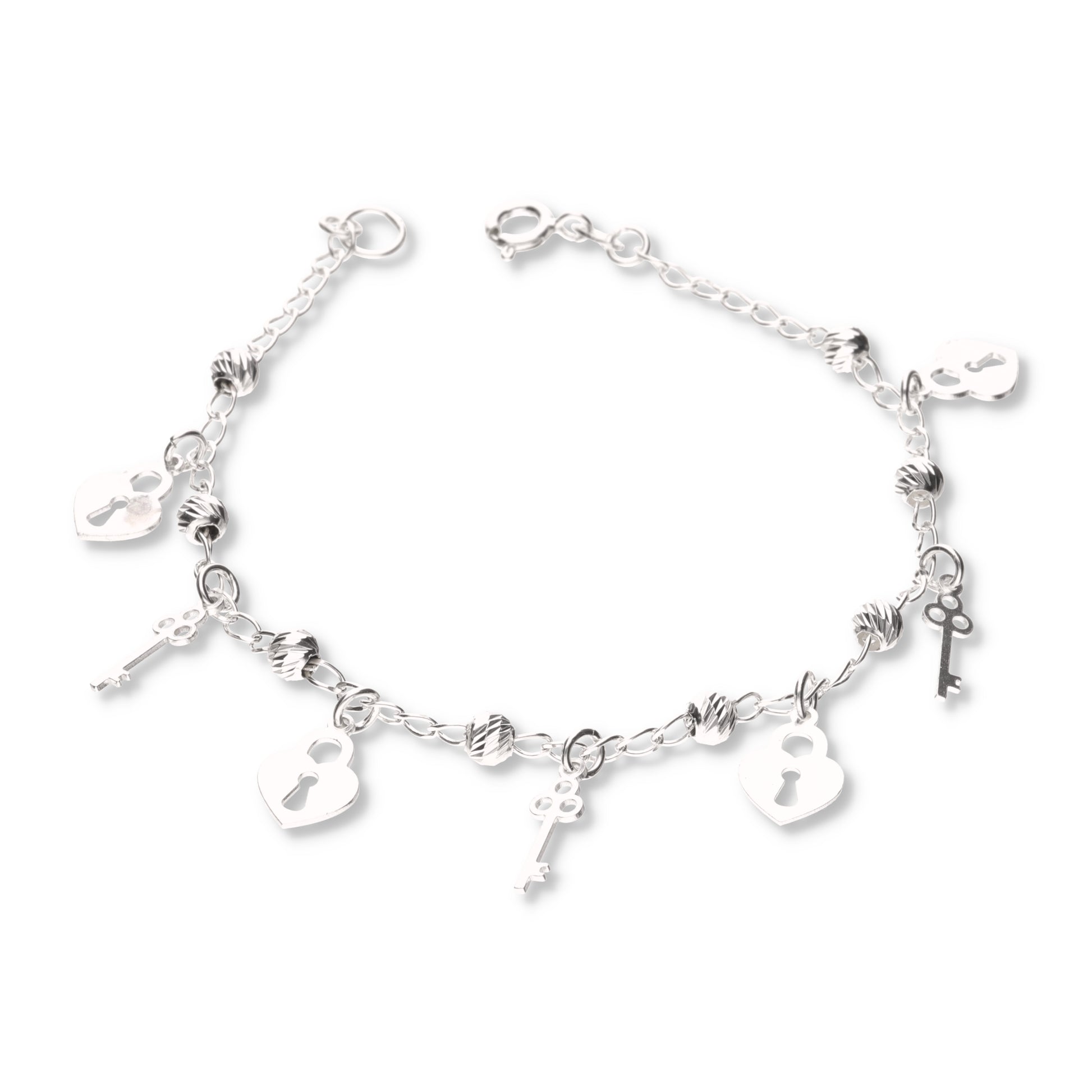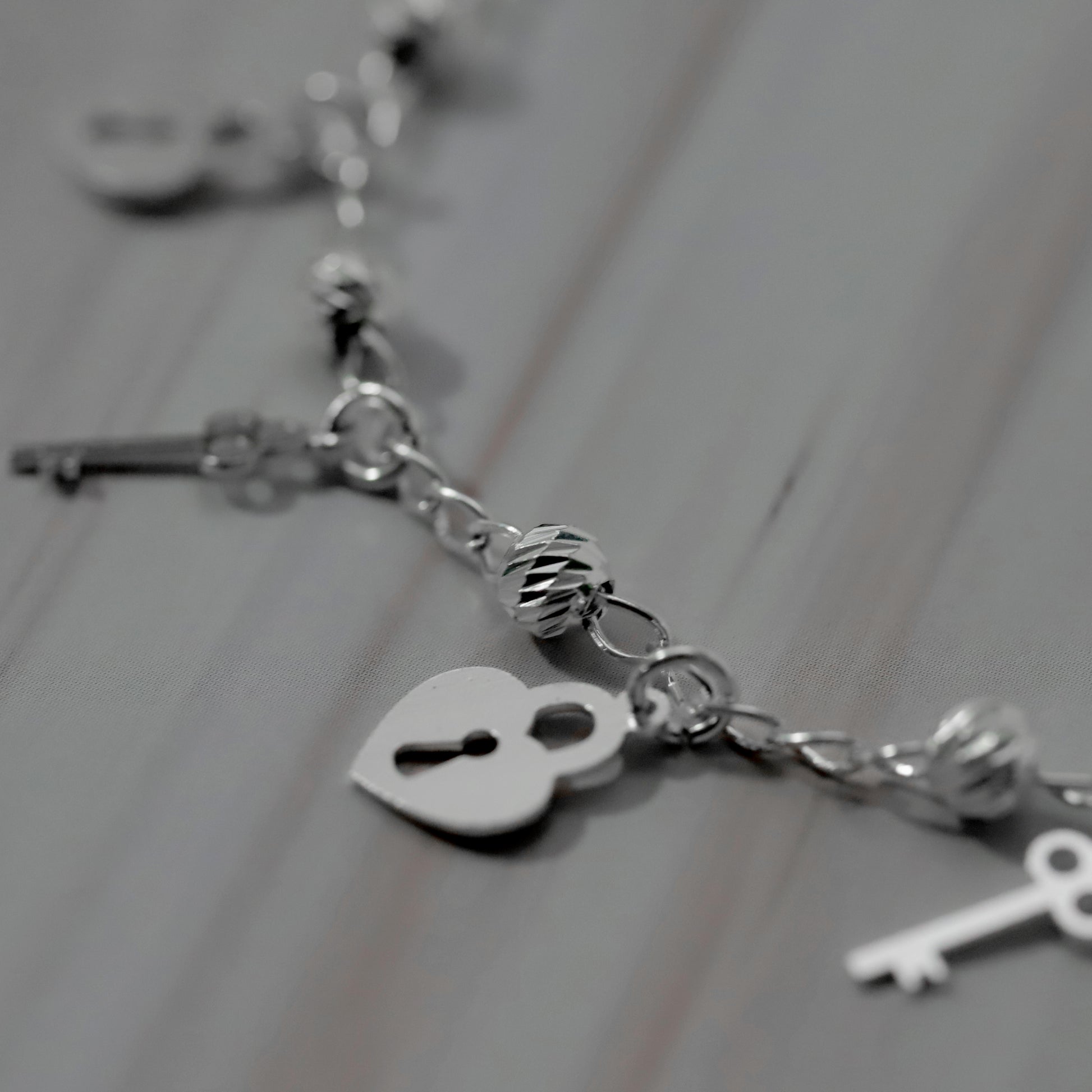 Pulsera de Candados Corazón laminados con Bolitas tipo Slash de Plata 925.