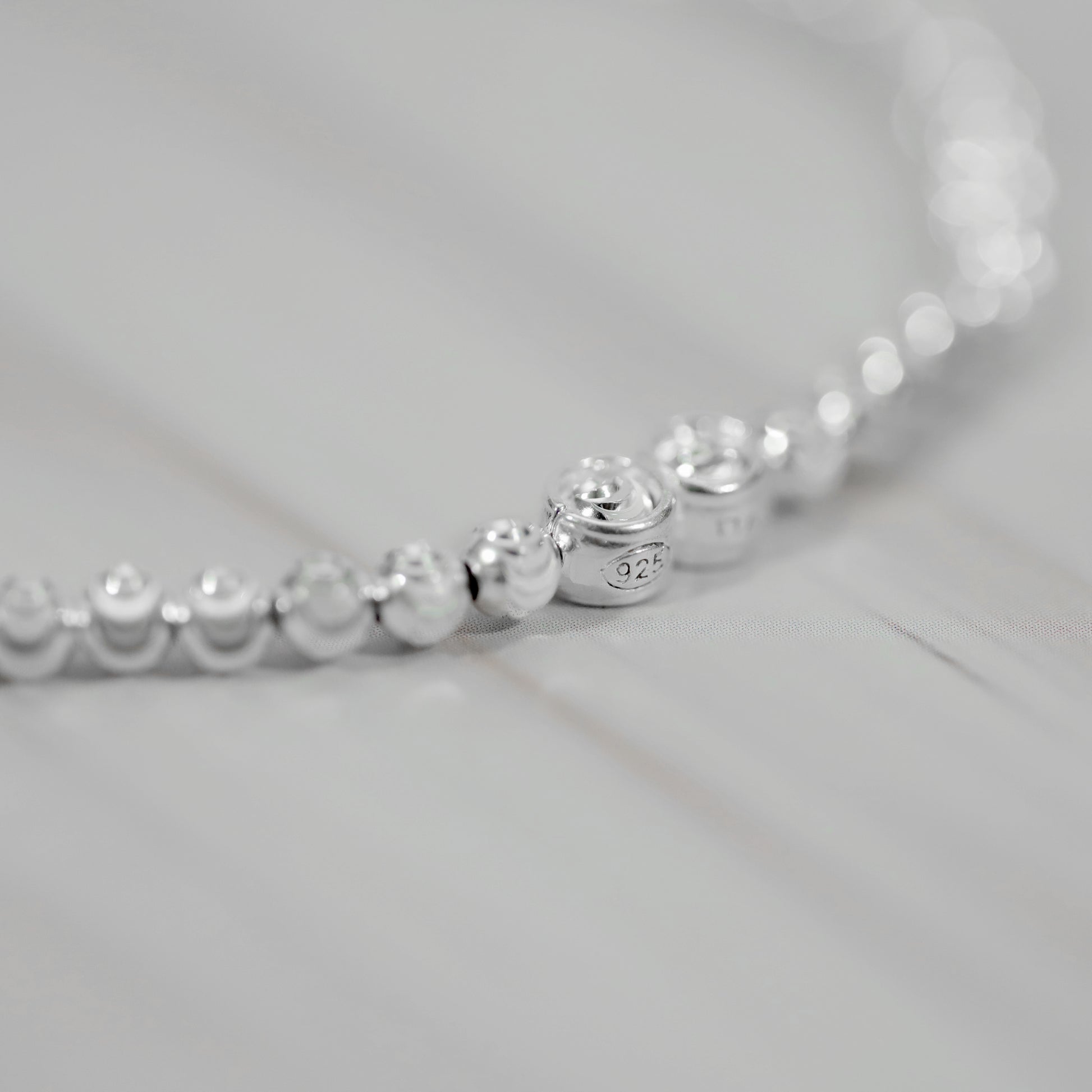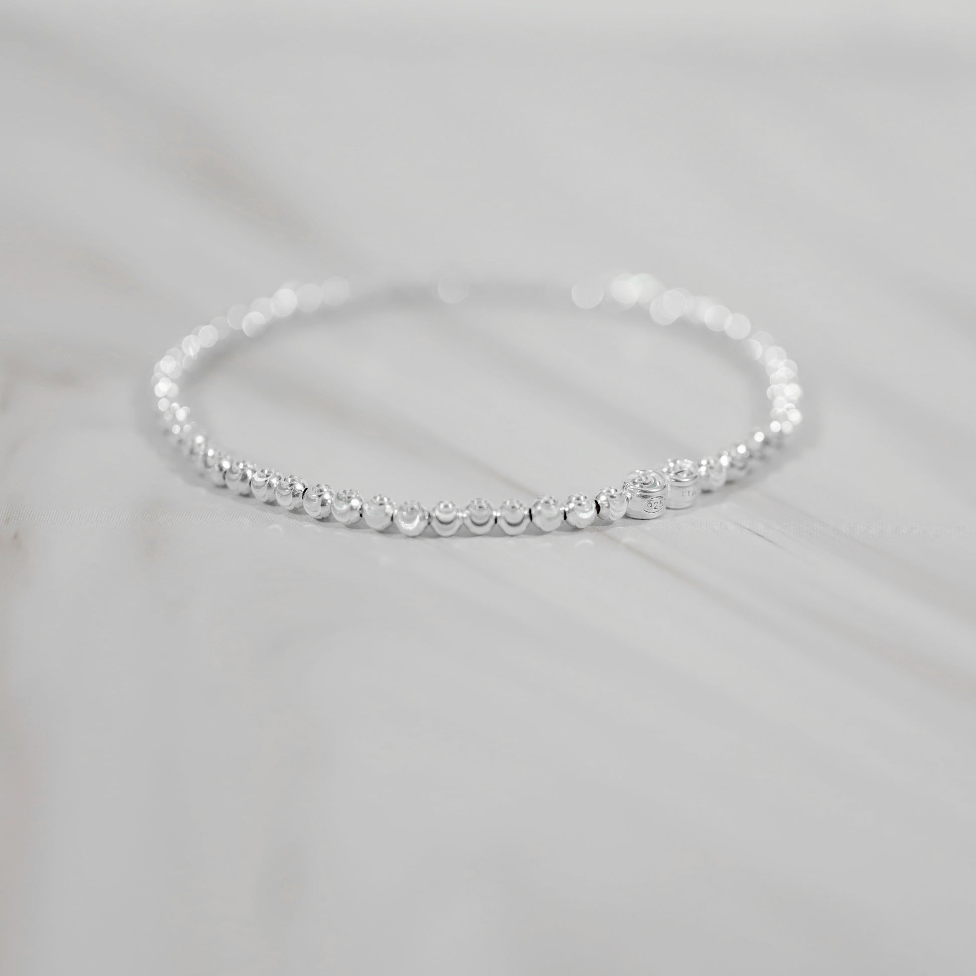 Pulsera Elástica de Plata 925 con Bola diamantida estilo Moon Cut en Medida 18cm.